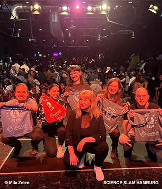 Wie unterhaltsame Wissenschaftskommunikation für die breite Masse funktioniert, demonstriert Marie Jakobs (Postdoc im Institut für Medizinische Psychologie und Verhaltensbiologie) mittlerweile erfolgreich auf Bühnen in ganz Deutschland. Mit ihrem Science Slam in Gedichtform reimte sie sich nun eindrucksvoll das vierte Mal in Folge auf den 1. Platz und somit direkt in die Herzen der Zuschauer*innen in Duisburg, Köln, Heidelberg und Hamburg. Anschlusstermine in Essen, Berlin und Fürth (Bayern) sind bereits für das neue Jahr geplant, um weiter darüber aufzuklären, was sabbernde Hunde, das Immunsystem und ihre Forschungsarbeit miteinander zu tun haben.